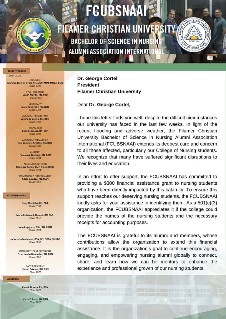 Supports nursing students affected by the recent flooding (2025)
