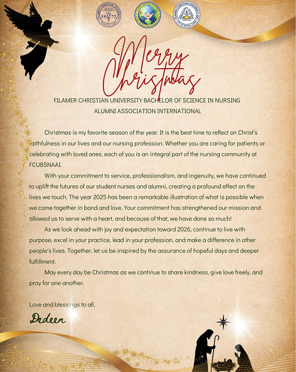 Filamer Christian University Bachelor of Science in Nursing Alumni Association International (FCUBSNAAI) is under the jurisdiction of Filamer Christian University Alumni Association, Inc., located at Filamer Christian University in Roxas City, Capiz, Philippines.