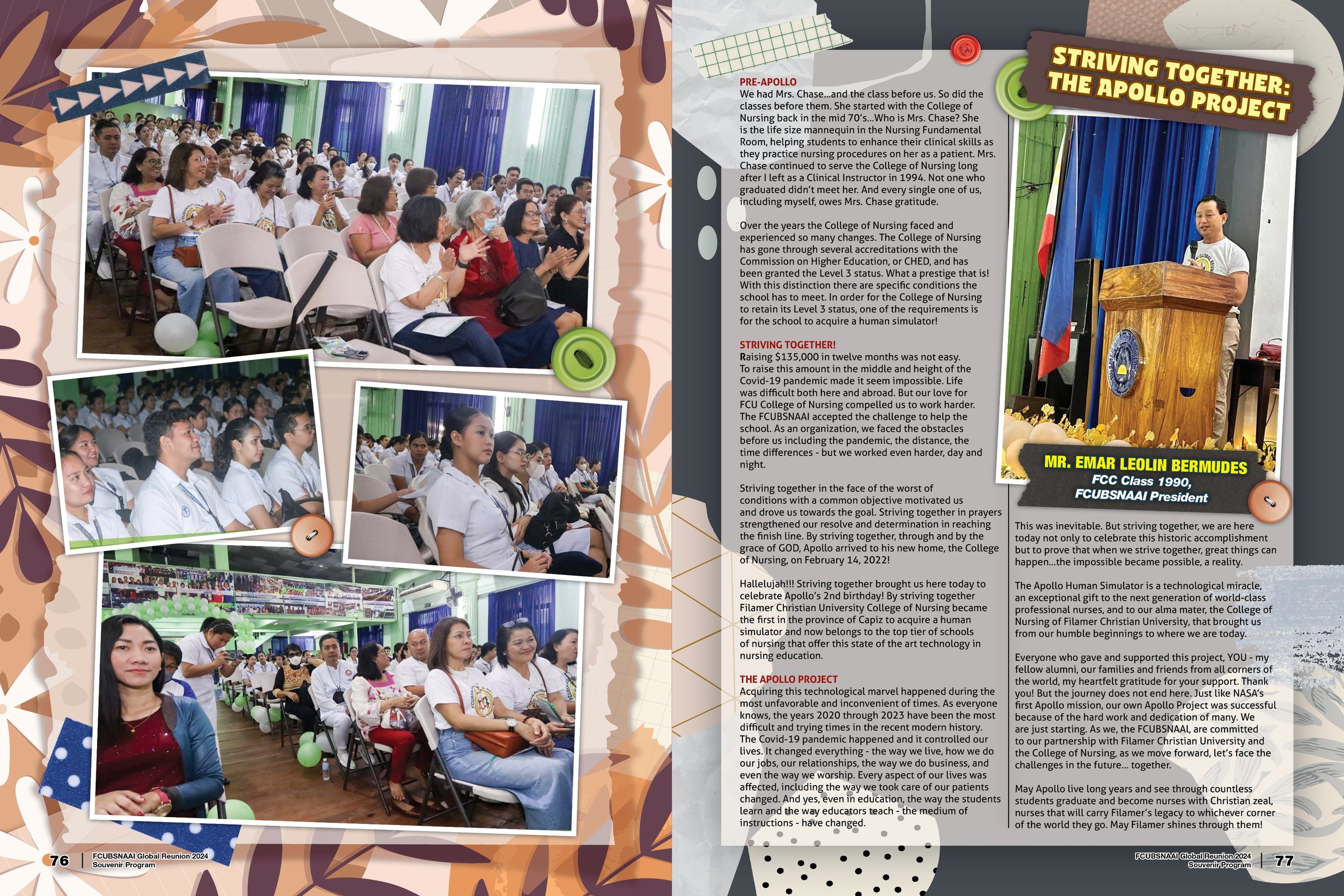 It can be recalled that Apollo was a grand project of the FCUBSNAAI for their supposed January 2022 global reunion in Roxas City but was postponed due to pandemic. The realization of the project was spearheaded by BSN Class 1977 with the cooperation of other FCU Nursing alumni and friends.