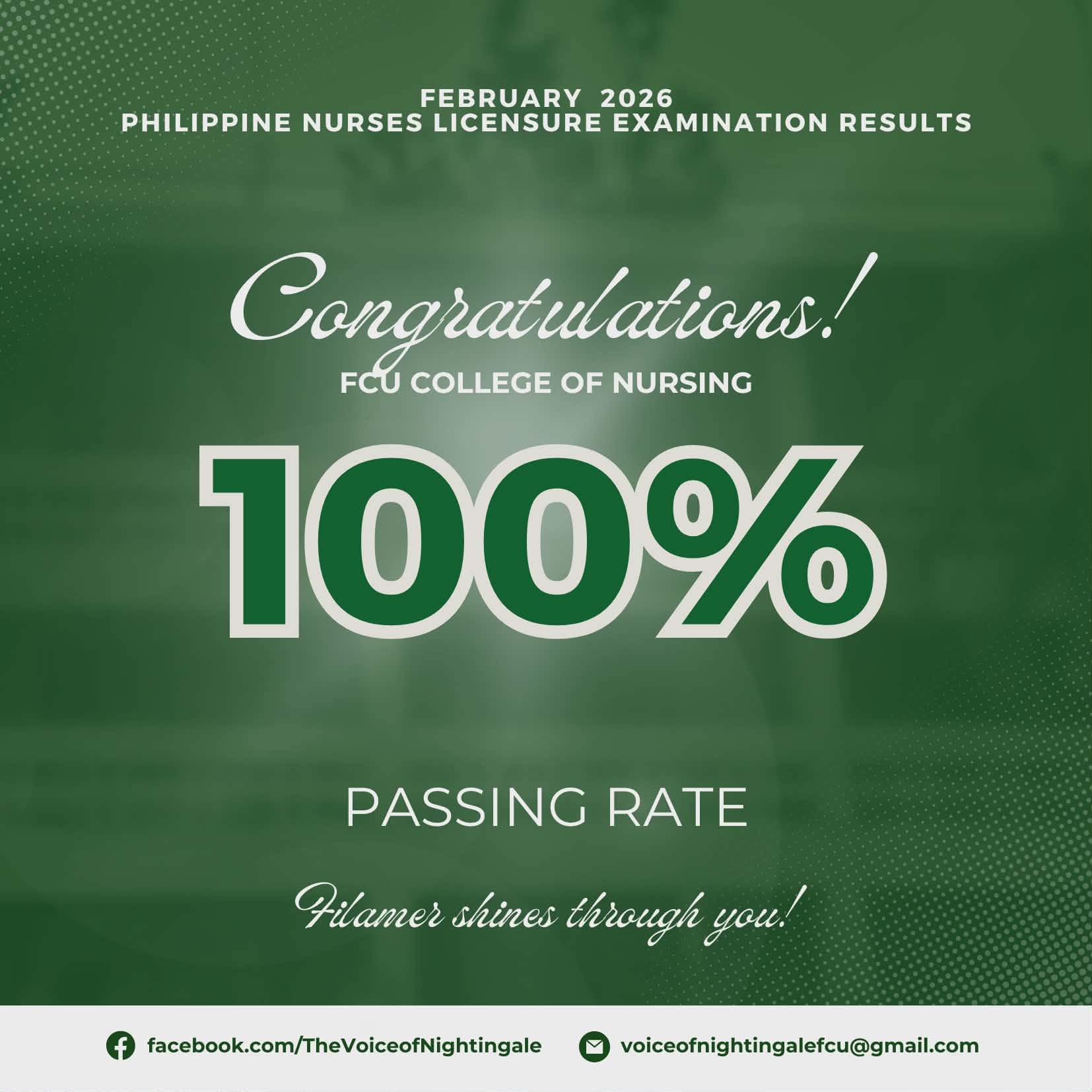 FCU College of Nursing obtained a strong 100% passing percentage for first takers.
